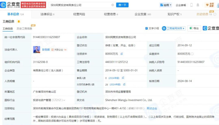 2020年12月,网聚投资作为有限合伙人参与设立广州绝了二期股权投资基金合伙企业(有限合伙),认缴出资额50000万元,占投资基金认缴出资总额的49.50%。